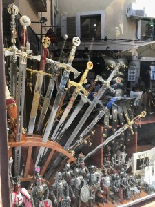 Başkent Madrid’e taşındıktan sonra şehir eski canlılığını yitirmiş. Dönemin Kralı da Toledo’ya canlılık kazandırmak için kılıç fabrikası yaptırmış. Bu sebeple Toledo şövalyeler şehri olarak da bilinir. Fabrika günümüzde hala aktif olarak kılıç üretiyor. Hatta burada üretilen kılıçlar “Yüzüklerin Efendisi” gibi birçok meşhur filmde kullanılıyor. İlginiz varsa kendinize hatıra olarak veya hediye olarak kılıç alabilirsiniz. Kılıç alırken dikkat etmeniz gereken; Çin malı olmaması ve üzerinde “Toledo” yazmasıdır. Kılıç almak için özel yerler gösterenlere ve mutlaka Kılıç Fabrikasına gidin diyenlere aldanmayın. Ara sokaklarda da orijinal ve çok güzel ürünleri çok daha ucuza alma imkanınız oluyor.