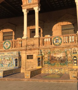 Devasa bir yarım daire şeklinde olan Meydan’ın iç kısmında İspanya’daki tüm şehirler alfabetik sıra ile dizilmiştir. Her şehrin adı yazıyor, şehri betimleyen bir tablo bulunuyor ve altında haritadaki yeri gösteriliyor. Belki dikkatinizi çekecektir; İspanya’da 51 şehir var ancak Meydan’da 50 tanesinin adı yazıyor. Eksik olan Sevilla; çünkü zaten Sevilla’dasınız 🙂 .